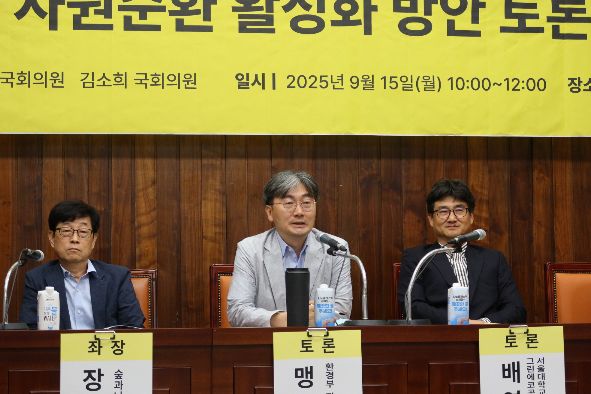 재단법인 숲과나눔(이사장 장재연)은 더불어민주당 김주영 의원, 국민의힘 김소희 의원과 함께 2025년 9월 15일 국회도서관에서 「멸균팩 자원순환 활성화 방안 토론회」를 개최했다. 이날 토론회에서는 유럽 사례 소개와 함께 멸균팩 재활용률이 2%에 불과한 국내 현실을 진단하고, 제도 개선 방안이 논의됐다.